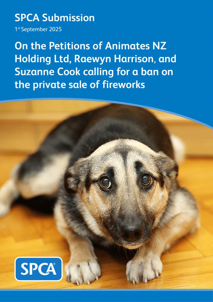 - SPCA submits in support of the petitions of Animates, Raewyn Harrison, and Suzanne Cook calling for a ban on the private sale of fireworks.