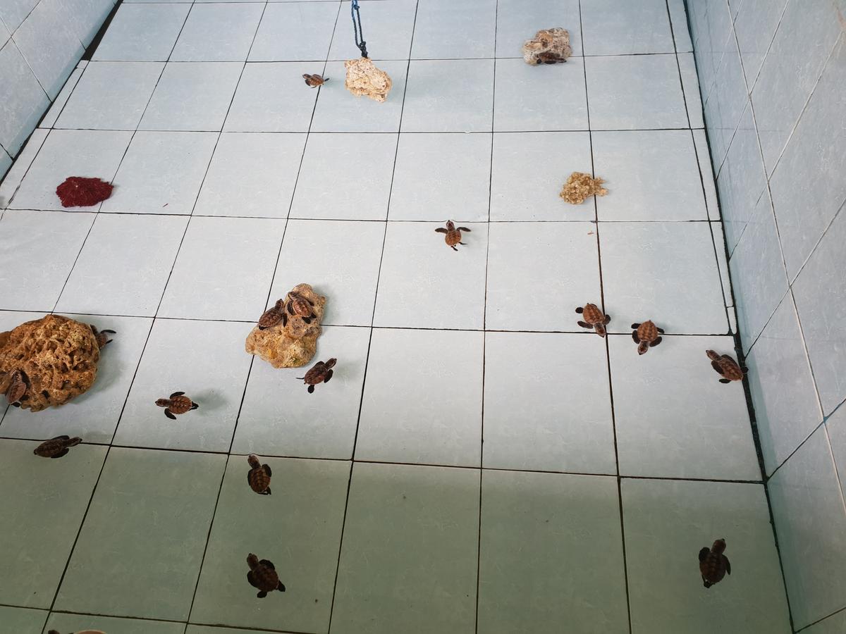What does the turtle rescue volunteer programme consist of? After receiving briefings and training, the volunteers are split into three task groups: feeders, tank cleaners and beach cleaners.