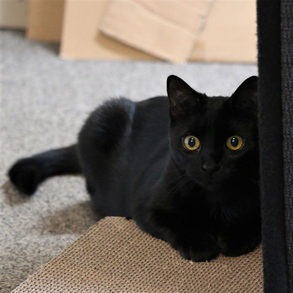 Meet Vegemite! This jet-black beauty was in our Wellington Centre for adoption for quite some time, during which she never let our team touch her. She was very timid and standoffish, which made her a harder animal to rehome. Vegemite has shown us once again how for many cats, being out of the shelter and comfortable in their own environment, is all it takes for their personalities to shine.