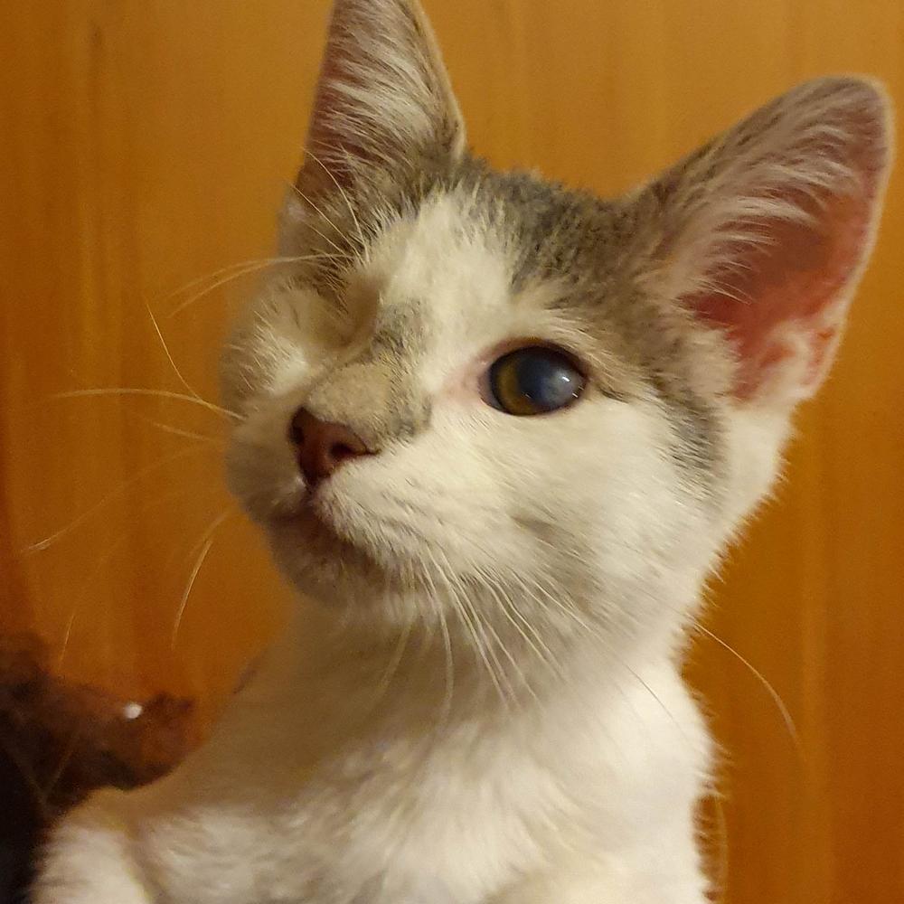Pixel has come so far... When we first met him, his cat flu was so bad it had damaged his eyes beyond repair. Not only was Pixel almost completely blind, but he was also incredibly depressed. We knew he’d need specialist care, so one of our staff who takes on the most “broken kitties” in need of foster took Pixel home.