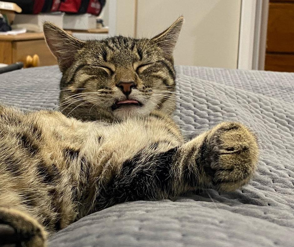 “We’re very proud of her,” Adam says, “and happy that we were able to teach her that hands can be trusted. We really enjoy her personality and company a lot now… we feel like we won the cat lottery.”