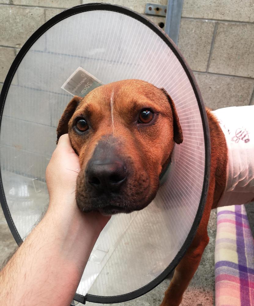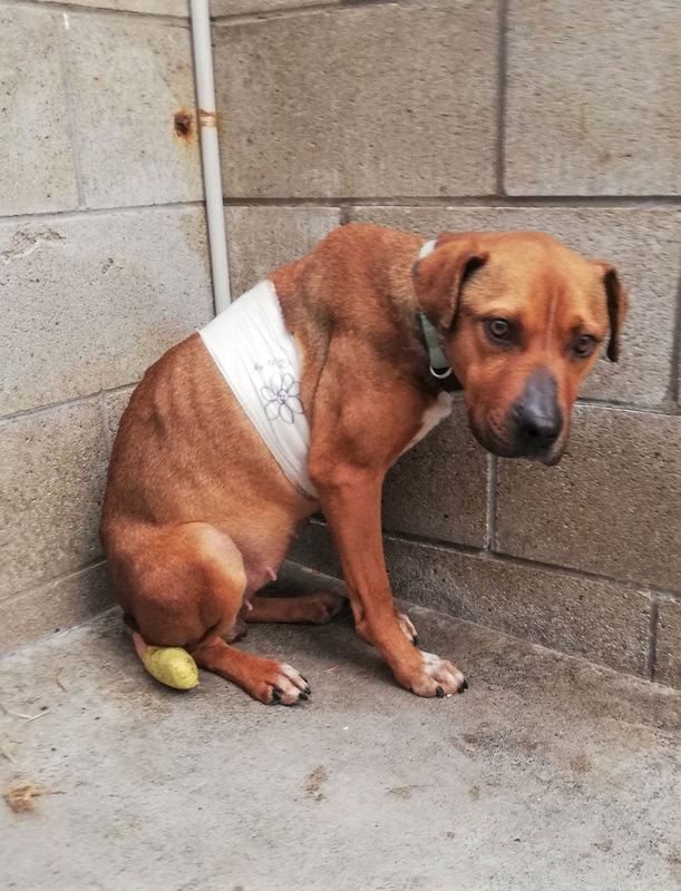 Because of Level 4 procedures, I didn't see where she was living, but was told she lived outside, tethered on a chain. When she was brought out, she was noticeably thin, and seeing her injury in the flesh, it appeared even worse than the picture I’d been sent.