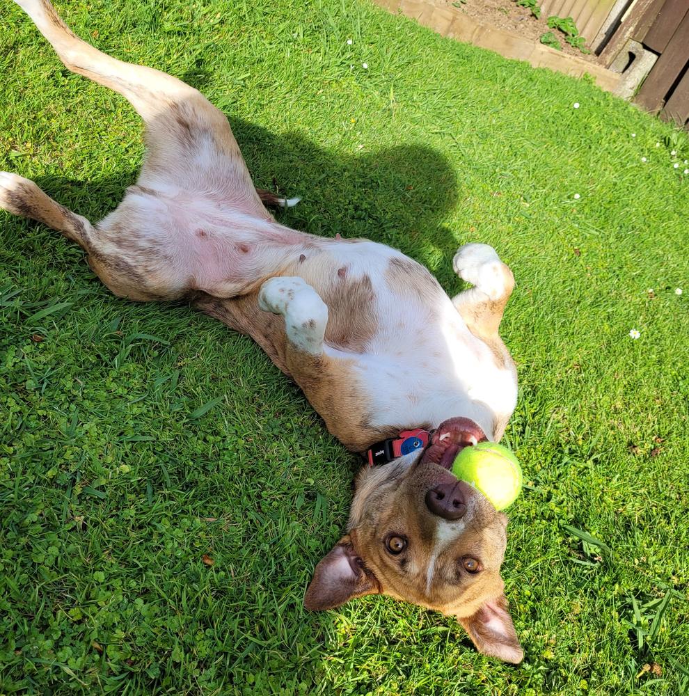 “At first, she was quite shy, and didn’t know how to play with any of the toys we got her. We would roll a ball towards her, and she would just gently move out of the way. Now, a few months later, she loves tennis balls!” they said.