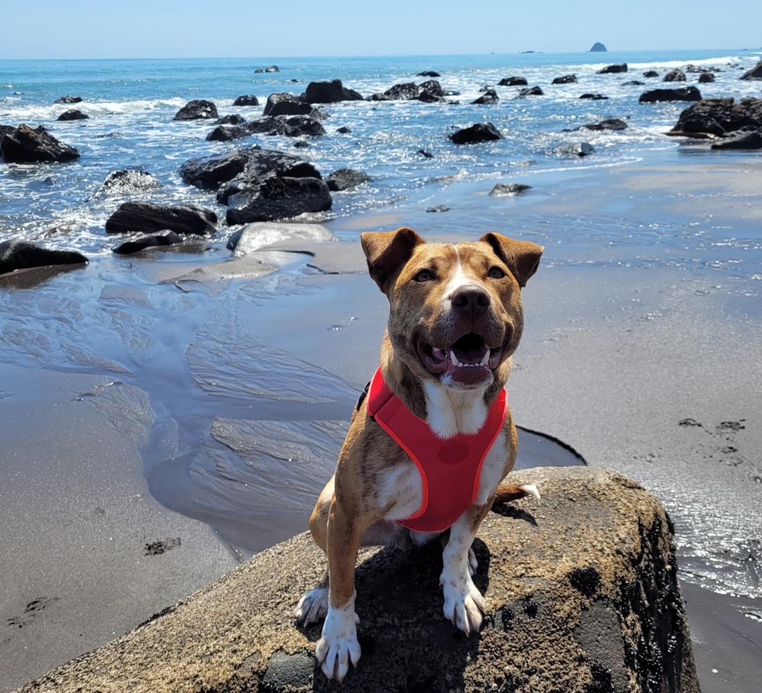 “The beach is probably her favourite place to go, as she just loves exploring and chasing the sea foam. We have a few friends with dogs, and she loves hanging out with them and running around with the kids. Her tail is constantly wagging and she loves going anywhere with us. We couldn’t imagine our lives without her.”