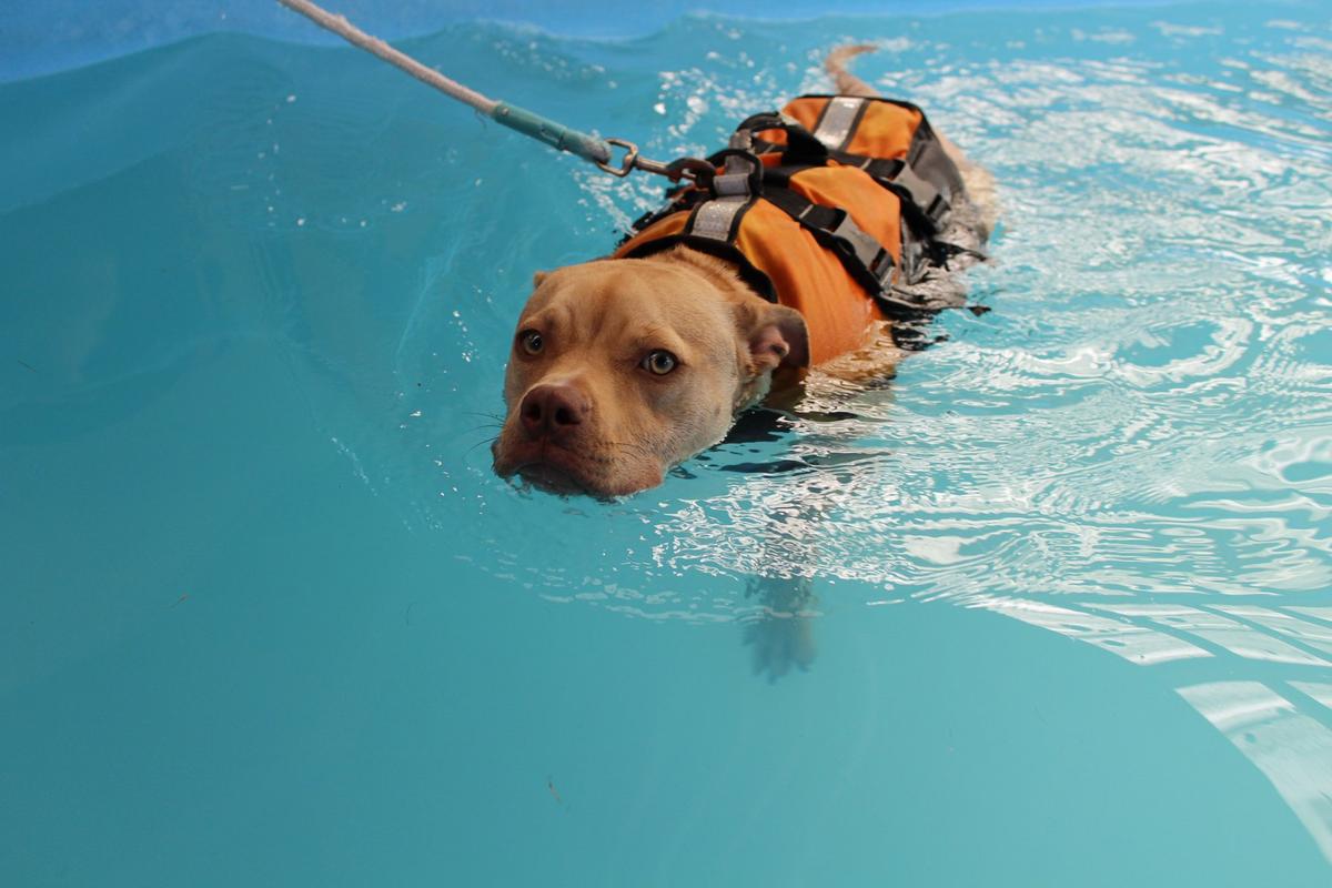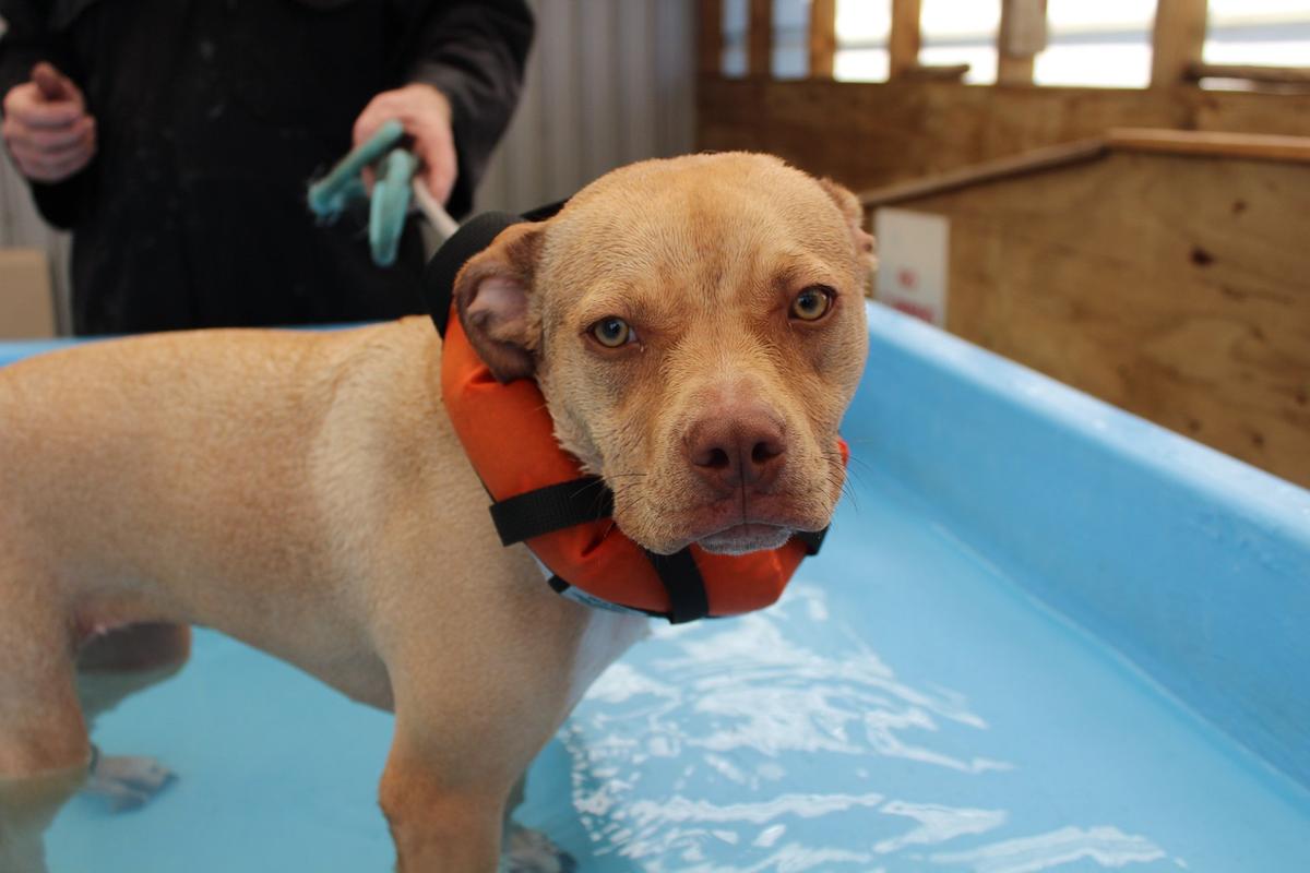 After surgery, Peaches had a splint on her leg for many weeks while the bone healed. She underwent multiple weekly hydrotherapy sessions to get the use of her leg back to normal and relieve any discomfort.