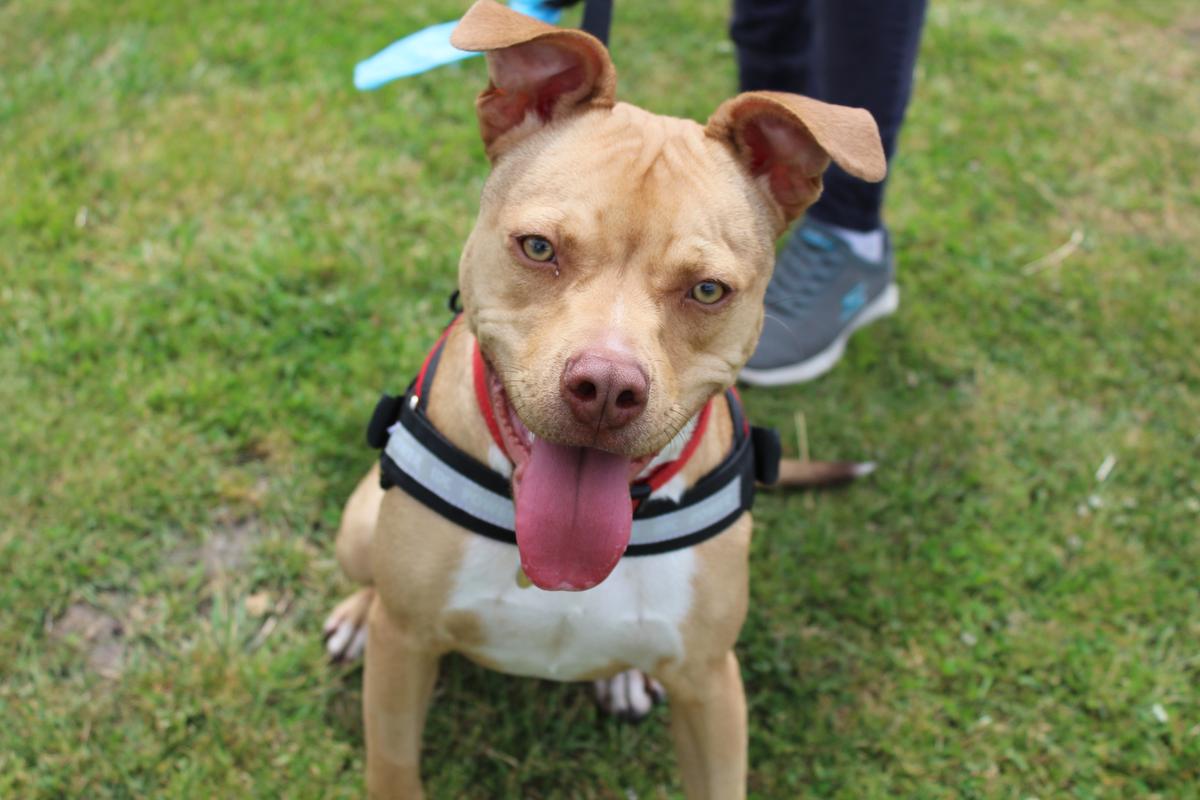 Because of the hardship Peaches faced when she was younger, she needs extra understanding and ongoing specialist training. Steph attends training sessions with Peaches to help her develop her confidence and trust in humans .