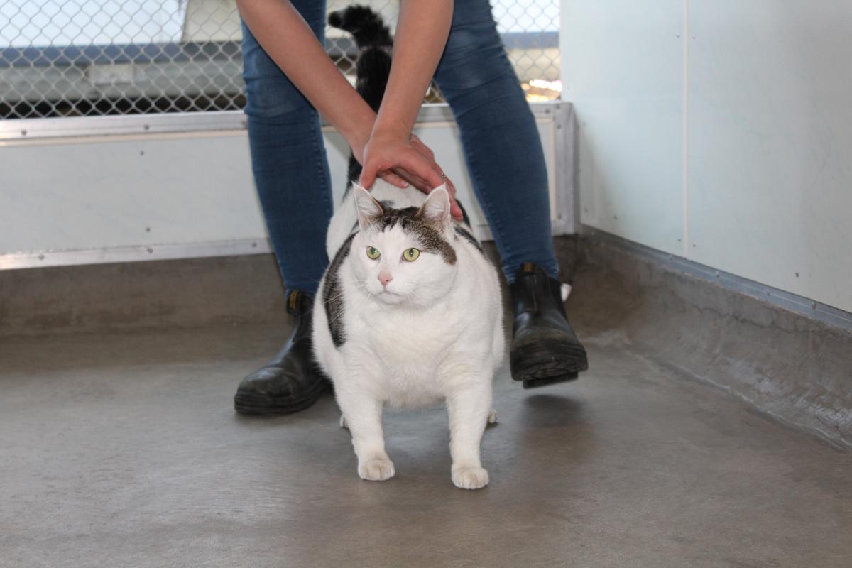 Blue’s weight is being managed in consultation with an SPCA vet, and he’s been put on a diet of Purina’s Healthy Metabolism Adult Premium cat food. A healthy weight-loss target was set at around 200 grams per week, with the goal of getting this cuddly cat down at least five kilograms before he can be adopted.