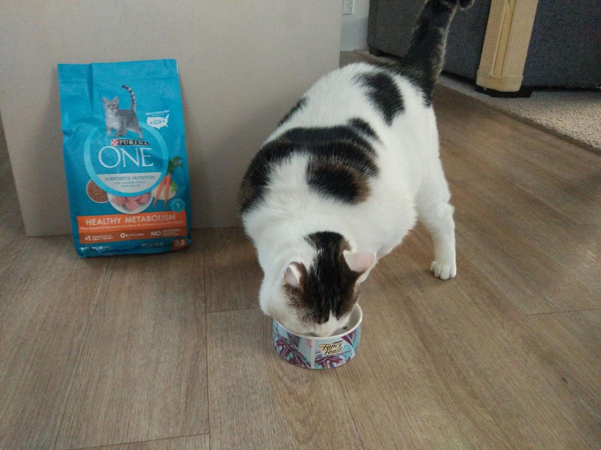 A simple way to help with cat over-eating use a puzzle feeder, which is not only a feeding tool but an enrichment device. These can be as simple as hollow toys stuffed with food, or feeding techniques such as scatter feeding to help promote normal hunting and foraging behaviours, which have been shown to help improve weight loss in obese cats. Food enrichment requires the cat to work for the food and increases the time it takes to consume the food, too.