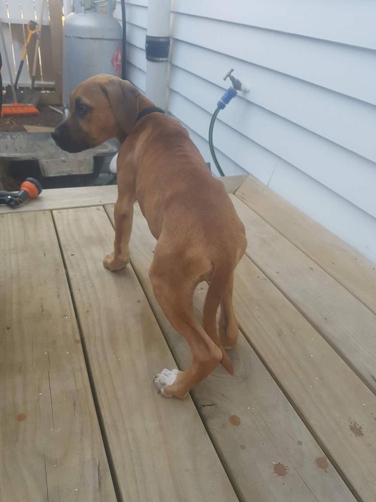 Serena was just a puppy when she found. Her ribs were protruding due to malnourishment and she had trouble walking because she was so underweight.