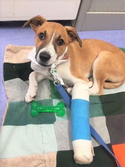 Teddy’s story starts with him on the side of the road, alone and in pain. He was just a puppy and had fractured legs, and dislocated hips. We’re not quite sure what happened to him, but what we are sure of is how terrified he must have been.